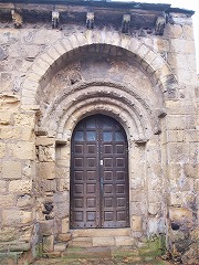 Façade occidentale 厳しい気候を鑑み、教会堂の西ファサードには、装飾が施されていません。 ファサードは2つのバットレスで補強されたシンプルな壁で、半円型の入り口の上に、半円型の開口部が見えます。 En raison des intempéries, la façade occidentale est dépourvue d'ornementation. Elle est constituée d'un simple mur pignon, renforcé par deux contreforts, et le portail en arc en plein cintre est surmonté d'une baie en plein cintre. |