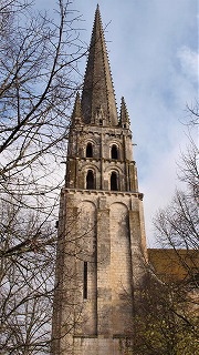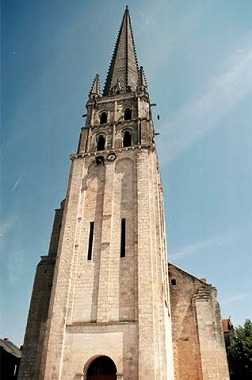 Clocher occidentale 方形のロマネスクの鐘楼は、2層に分かれます。11世紀に建設された下層には連続アーチの装飾があり、12世紀に造られた上層は2段になっていて、半円型の開口部があり、モディヨンで装飾されています。 鐘楼の上にはゴシックの尖塔があり、これは14世紀に造られました。全体で、高さは77.60メートルに達します。 Le clocher carré roman se divise en deux niveaux : le niveau inférieur réalisé au 11e siècle, est orné d'arcatures aveugles : celui supérieur plus étroit de deux étages, ajouté au 12e siècle, est percé de baies en plein cintre, et orné de modillons. Il est couronné d'une flèche gothique du 14e siècle. Cet ensemble atteint 77,60 m. 鐘楼は1664年にサン・モール会士らにより修復されました。尖塔は1820年に落雷により崩壊し、1870年代に修復されました。 En 1664, les Mauristes, ont restauré le clocher, dont la flèche a été en partie détruite en 1820 par la foudre : celle-là a été restaurée dans les années 1870 par l'architecte Jean Camille Formigé. |