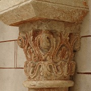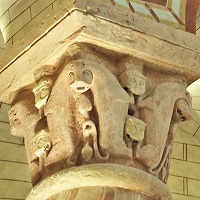 内陣の柱頭は、向かい合ったライオンとアカンサスの葉の装飾が、交互に施されています。 |