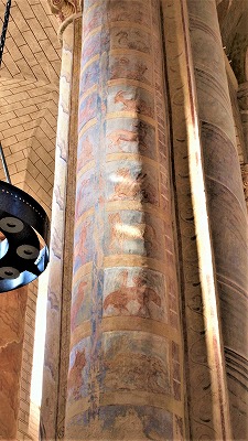 Peintures de la colonne 教会堂内の円柱の柱身は、大半が大理石のような模様で彩色されています。動物を描いたものもあります。 Les fûts des colonnes sont pour la plupart peints en faux marbre. Certains montrent le bestiaire. |