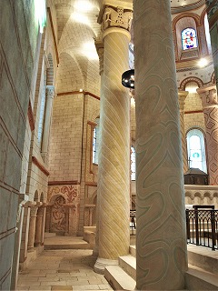 | 円筒型のヴォールトが架けられた2ベイからなる各翼廊には、それぞれ東側にセミ・ドームで覆われた後陣祭室があります。北後陣祭室は大天使を、南後陣祭室は使徒を祀っています。 北翼廊では、1884年工事の際に、修道院長オドン2世の石棺が発見されました。ちなみにこの人物が修道院長である時期に、ロマネスクの教会堂の建設が始まりました。 南翼廊は北翼廊よりも短く、2つの開口部は埋められています。南翼廊の続きには、17世紀に建てられた修道院の付属の建物があります。かつて南翼廊は、13世紀の修道院の建物と直接繋がっていました。 |
