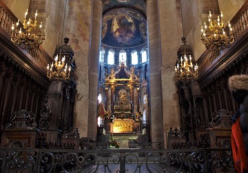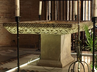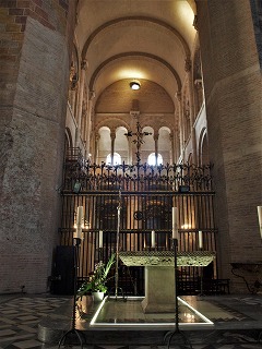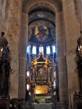 | 1096年にローマ教皇ウルバヌス2世により聖別されたロマネスク期の祭壇が、1953年よりトランセプト交差部に設置されています。この祭壇は、聖別時にはアプスにありました。 ちなみに1096年の聖別時には、後陣とトランセプトしか完成していませんでした。 |