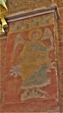 Fresques du bas-côté nord 北側廊の最後のベイに、1140年頃に制作された、2つのロマネスクのフレスコ画が残ります。雲の上に座っている天使と、「我に触れるな」が描かれています。 Dans la dernière travée du bas-côté externe au nord, se trouvent deux fresques romanes datant des environs de 1140 : un ange assis sur les nuages et Noli me tangere. |