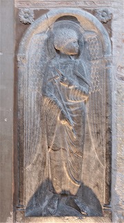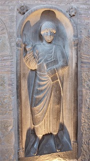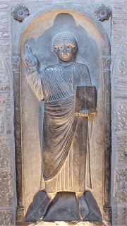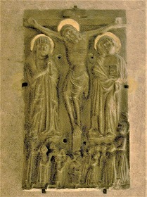 東側の面には、祝福のポーズをし、聖書を手にした若いキリストが、天使達に支えられたメダイヨンの中に描かれています。 | |