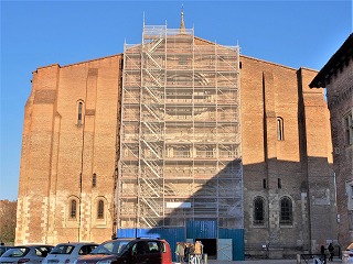 | 4世紀、サトゥルニヌスの墓の上に木造のバシリカが建てられ、聖人の遺骨への崇敬が始まります。5世紀初め、新たなバシリカが現在の教会堂の場所に建設され、ここに聖遺骨が移送されました。この頃参事会が創設されました。 1070年代初め、巡礼者の増加に伴い、現在の教会堂の建設が始まります。1096年に祭壇が聖別されますが、工事は12・13世紀の間続きました。 革命時参事会は抹消されましたが、教会堂が被害に遭うことはありませんでした。19世紀半ば、大修復工事が始まります。 Au 4e siècle, une basilique de bois a été bâtie sur la tombe de Saturnin, autour de laquelle la vénération des reliques a commencé. Au début du 5e siècle, une nouvelle basilique a été édifiée à l'emplacement de l'église actuelle : les reliques du saint, y ont été transférées. A cette époque, le chapitre de Saint-Sernin a été créé. Au début des années 1070, la construction de l'église actuelle a débuté devant l'afflux des pèlerins. En 1096, l'autel a été consacré, tandis que les travaux se sont poursuivis au cours des 12e et 13e siècles. A la Révolution, le chapitre a été supprimé, mais l'église n'a pas été saccagée. Au milieu du 19e siècle, la grande restauration a été entrepris. |