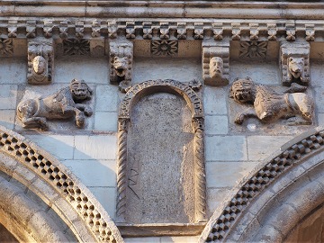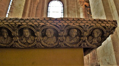 | 周歩廊の内側の壁に、大理石の7つの大きなレリーフが埋め込まれています。1090年代に遡るこれらのレリーフは、1096年に聖別されたロマネスクの祭壇のテーブルにサインを残したBernard Gilduinにより制作されました。 | ||
