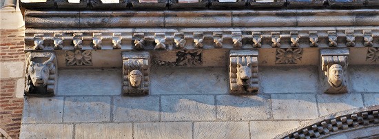 Les modillons qui ornent la corniche au chevet, sont du 19e siècle. |