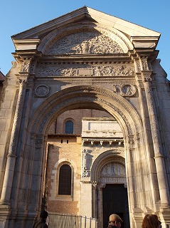 | 2つの入り口の間ににある壁龕の中に、2頭のライオンに挟まれて、サトゥルニヌスの彫像がありましたが、革命時に破壊されました。今日では、「SANCTVS SATVRNINVS」という銘が残るのみです。聖人の像は、彼の弟子達に囲まれていたと思われます。 Détruite par les révolutionnaires, la statue de saint Saturnin se trouvait dans une niche entre deux portails, protégée par deux lions. Il ne reste qu'une inscription,"SANCTVS SATVRNINVS". Saturnin de Toulouse aurait été entouré de ses disciples, Papoul et Honest. |
